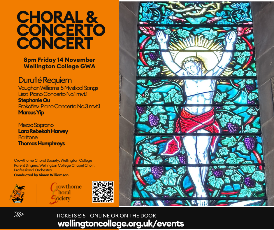 Students from Wellington College will join CCS to perform the hugely popular Fauré Requiem, and Duruflé’s Quatre Motets, in the magnificent setting of Wellington College Chapel